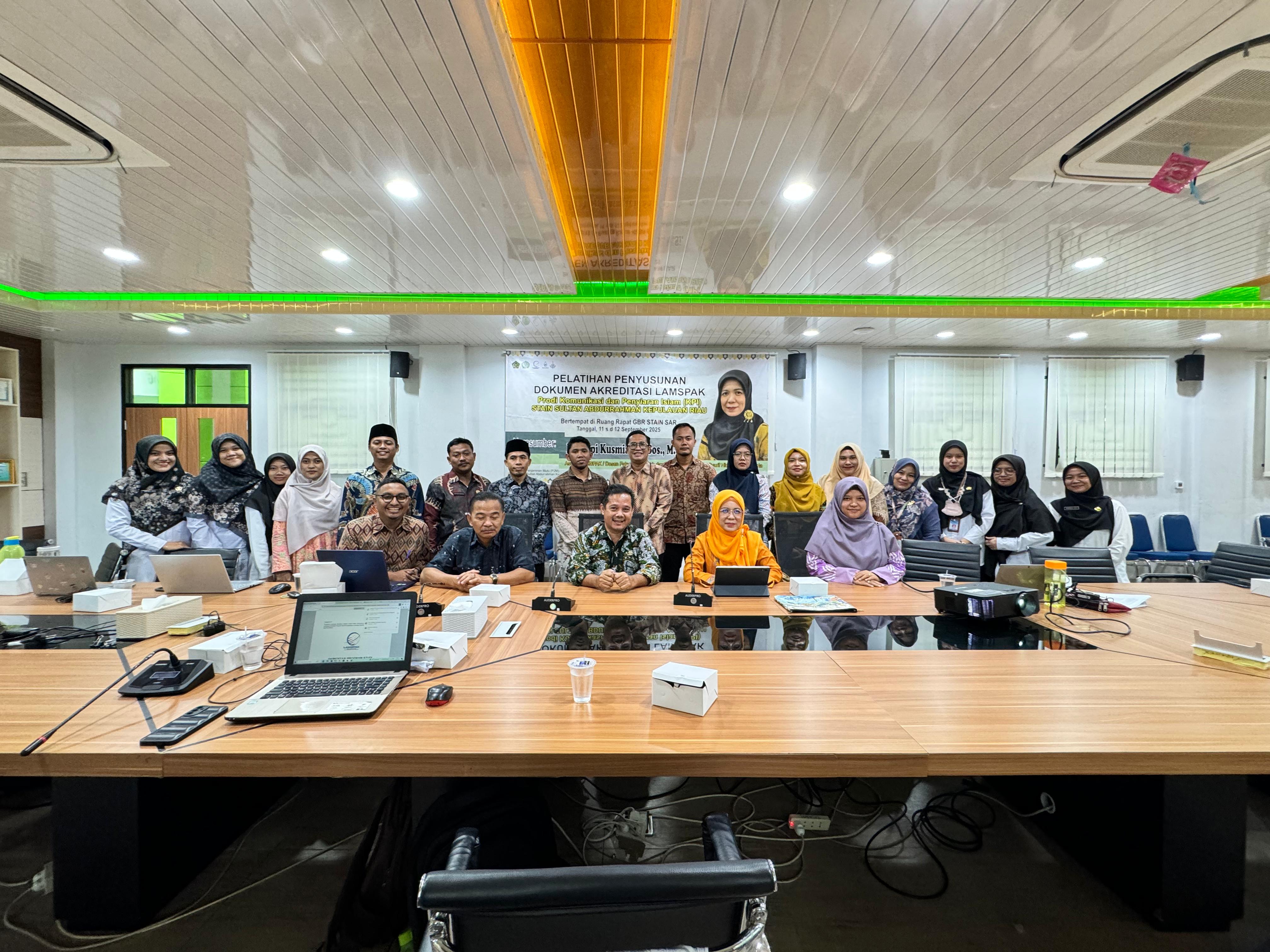 Bintan - Program Studi Ilmu Komunikasi dan Penyiaran Islam (KPI) di lingkungan STAIN Sultan Abdurrahman Kepulauan Riau sukses menyelenggarakan pelatihan penyusunan dokumen akreditasi LAMSPAK pada tanggal 11–12 September 2025. Acara ini digagas dan diselenggarakan oleh Pusat Penelitian dan Pengabdian kepada Masyarakat (P2M) STAIN Sultan Abdurrahman KEPRI sebagai bagian dari persiapan menyeluruh untuk menghadapi proses akreditasi program studi. Pelatihan tersebut mengambil tempat di ruang rapat Gedung Balai Rektorat (GBR) STAIN Sultan Abdurrahman, dengan tujuan utama memaksimalkan penyusunan seluruh dokumen akreditasi agar memenuhi standar mutu dan regulasi yang ditetapkan oleh LAMSPAK.